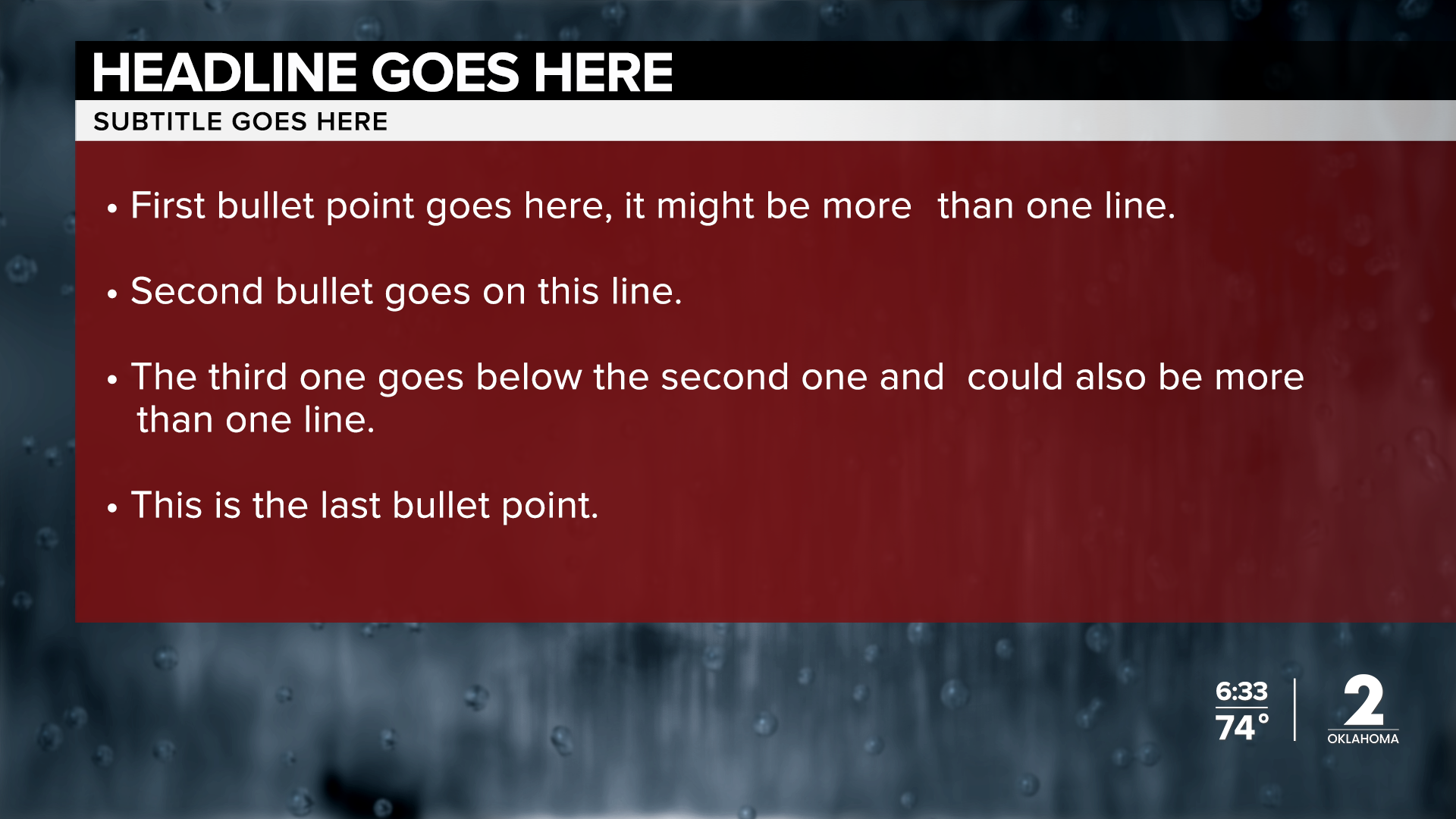 Everyone deals with severe weather at times. It's important for us, as a news source, to communicate breaking weather information to our viewers. From hurricanes in Florida to tornadoes in Oklahoma, I've designed and animated graphics for it.